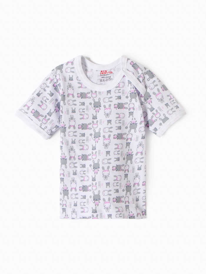 Футболка детская на кнопках "Зайки", цвет белый/розовый, рост 80
