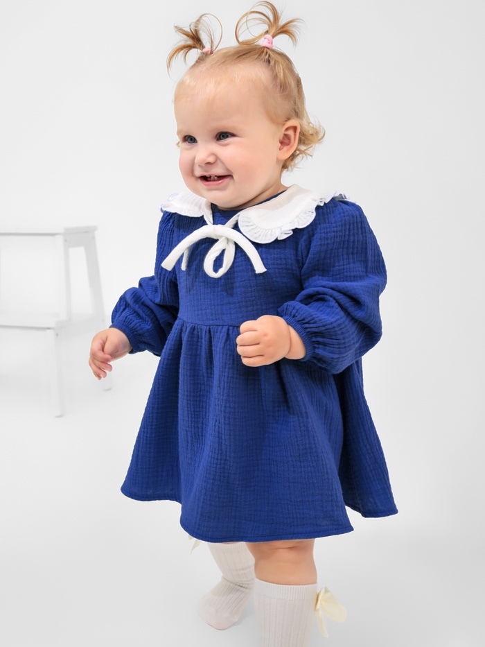 Платье с воротничком Крошка Я Муслин, 74-80, синий