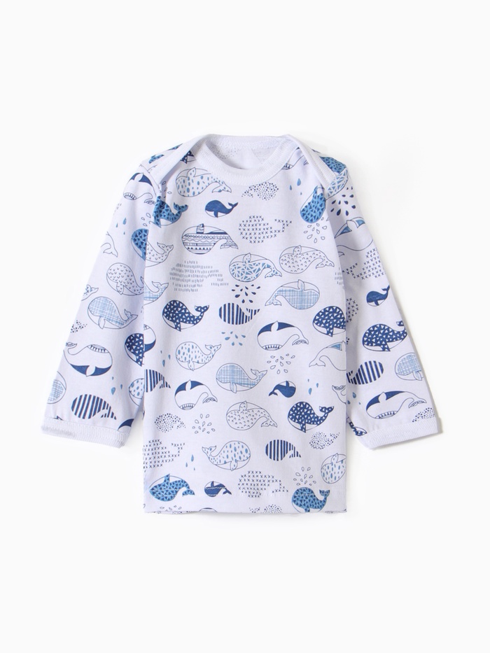 Кофточка детская с длинным рукавом "Киты", цвет белый/синий, рост 68 см
