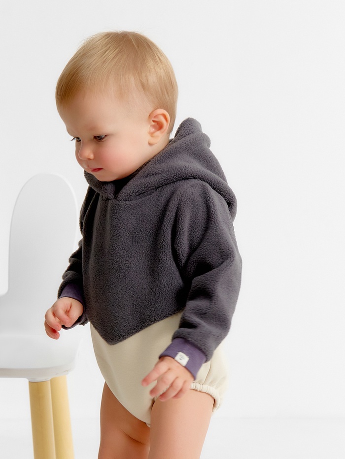 Худи-боди детское MINAKU, цвет графит/экрю, рост 86-92