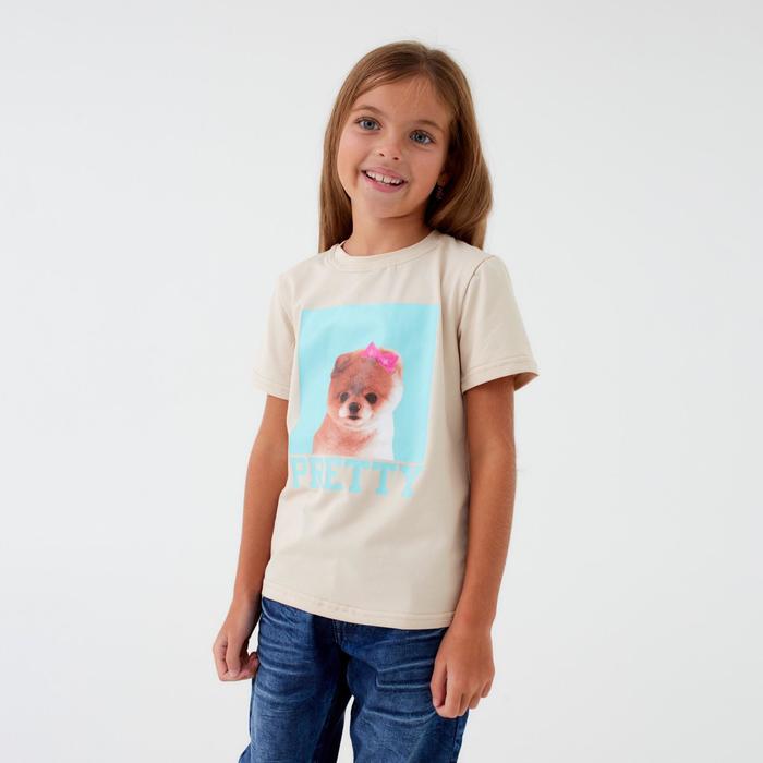 Футболка детская Basic line, бежевый меланж, рост 122 см