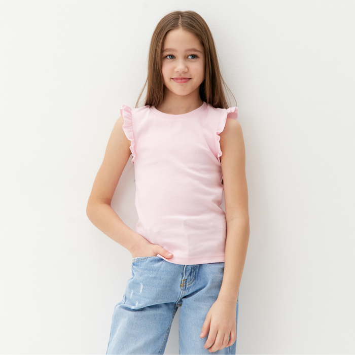 Футболка для девочки однотонная MINAKU: Basic line, розовая, рост 140 см