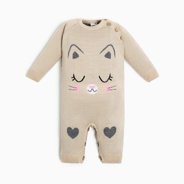 Комбинезон вязаный Крошка Я «Мордочка», рост 74-80 см, бежевый