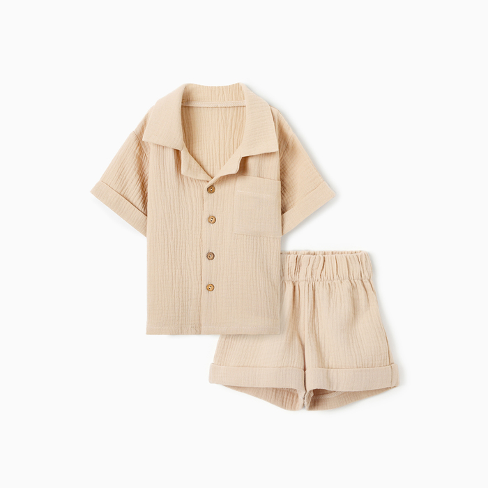 Костюм для мальчика (рубашка, шорты) «Крошка Я», рост 86-92, бежевый