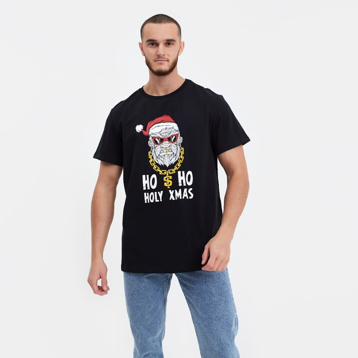 Футболка мужская новогодняя, чёрная, размер 50