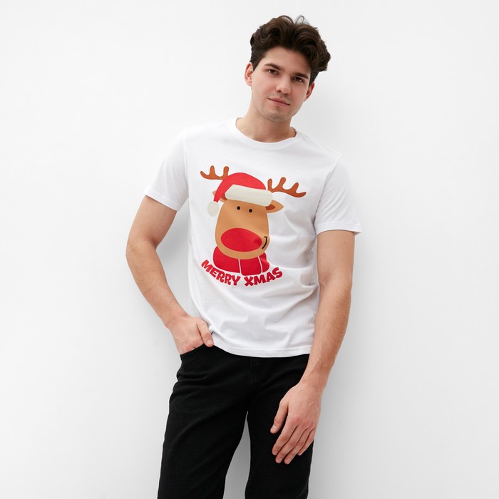 Футболка мужская KAFTAN "Merry Christmas" размер 52, белый