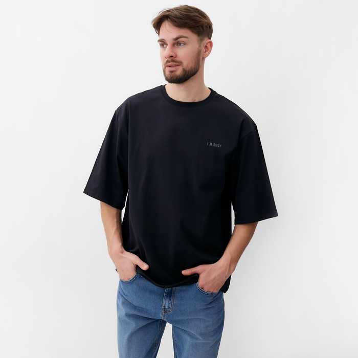 Футболка мужская с принтом, цвет чёрный, размер 48