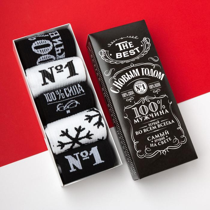 Носки мужские новогодние The best размер 41-44 (27-29 см), набор 5 пар