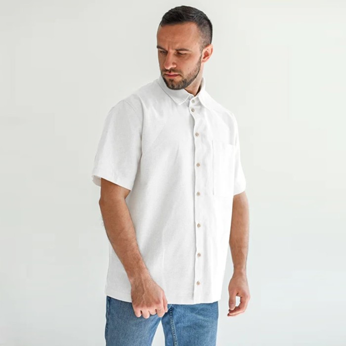 Рубашка мужская с коротким рукавом MIST, размер 50, молочная