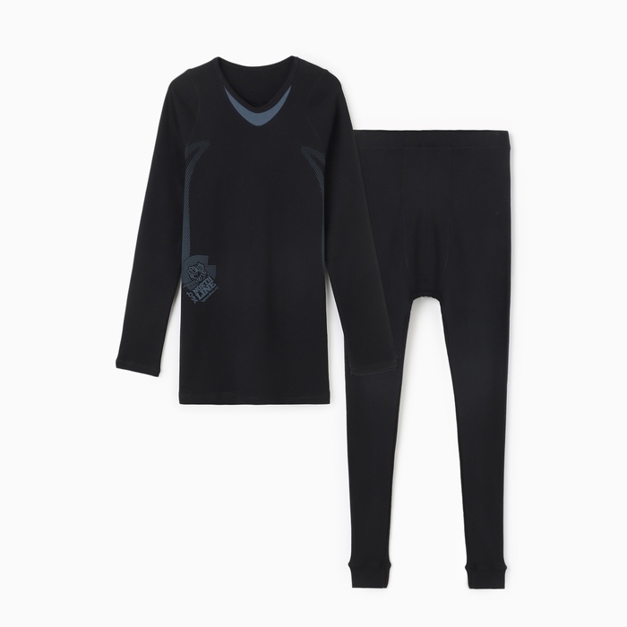 Комплект мужской (фуфайка кальсоны) термо, цвет чёрный/синий, р-р 46