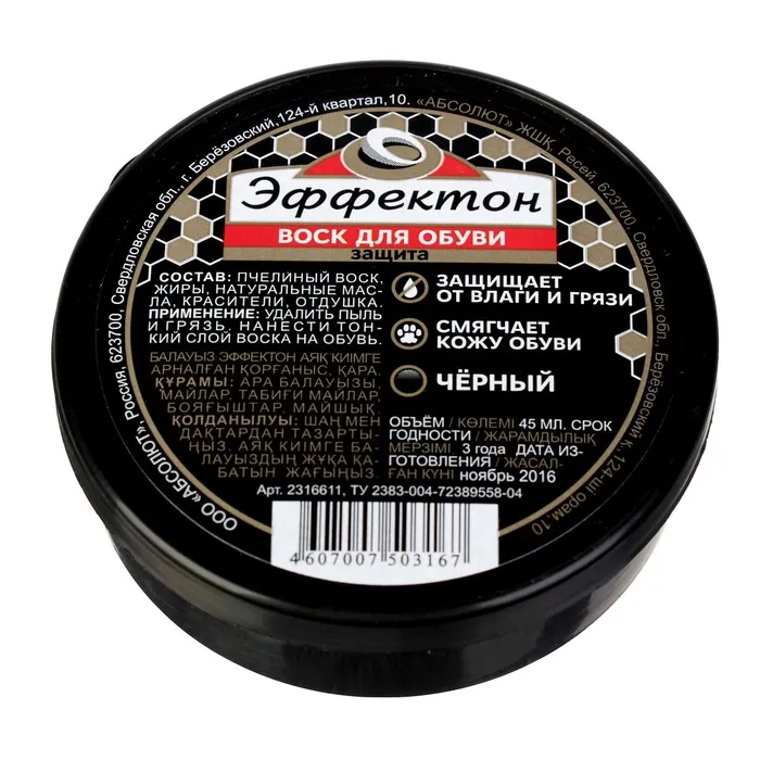 Воск для обуви Эффектон бесцветный, банка, 45 мл