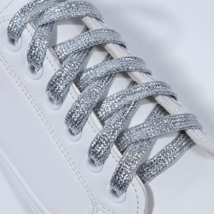 Шнурки для обуви, пара, плоские, 10 мм, 110 см, серебристые