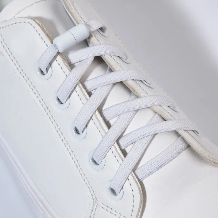 Шнурки для обуви, пара, плоские, с фиксатором, эластичные, 6 мм, 100 см, белые