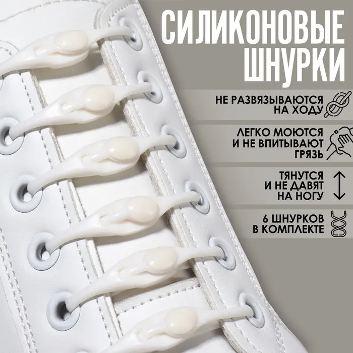 Набор шнурков для обуви, 6 шт., силиконовые, полукруглые, на застёжке, 4 мм, 11 см, белый