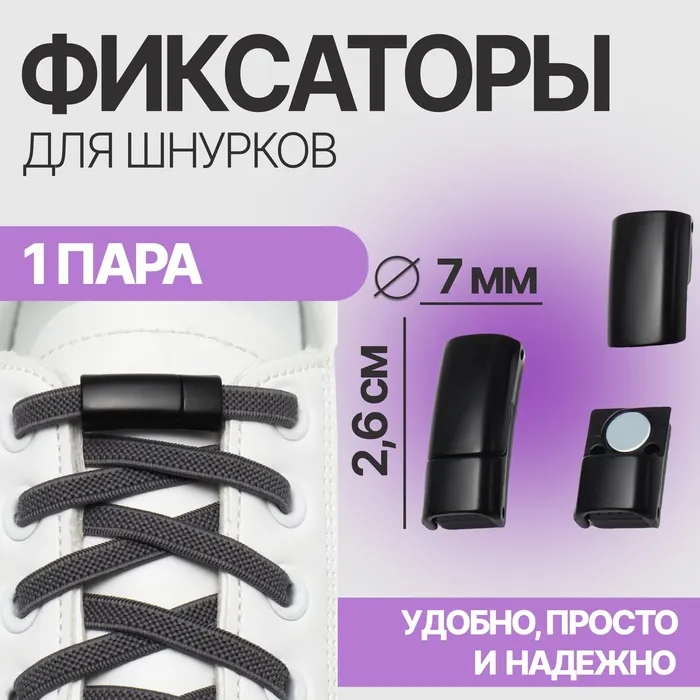 Фиксатор для шнурков, на магните, пара, размер 2.6×2×0.7 см, чёрный
