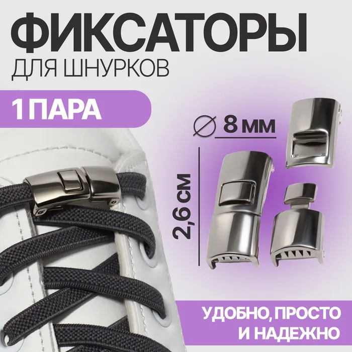 Фиксатор для шнурков, пара, размер 2.6×1×0.8 см, серебристый