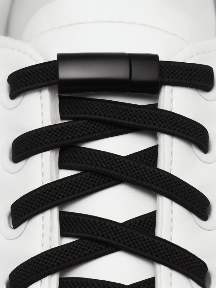 Шнурки для обуви, на магнитах, пара, с плоским сечением и фиксатором, 100 см, чёрные