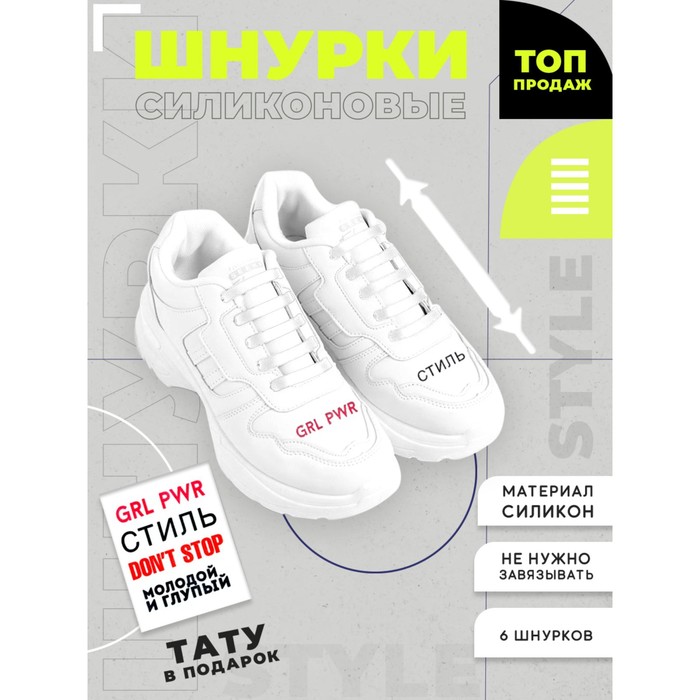 Шнурки силиконовые, цвет белый, набор 6 шт + переводное тату