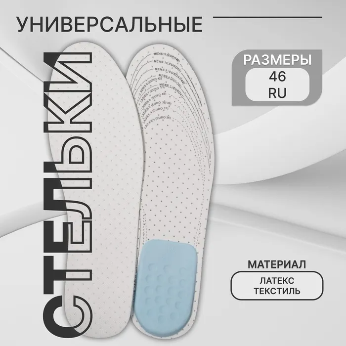 Стельки для обуви, универсальные, дышащие, р-р RU до 46 (р-р Пр-ля до 46), 29 см, пара, белые