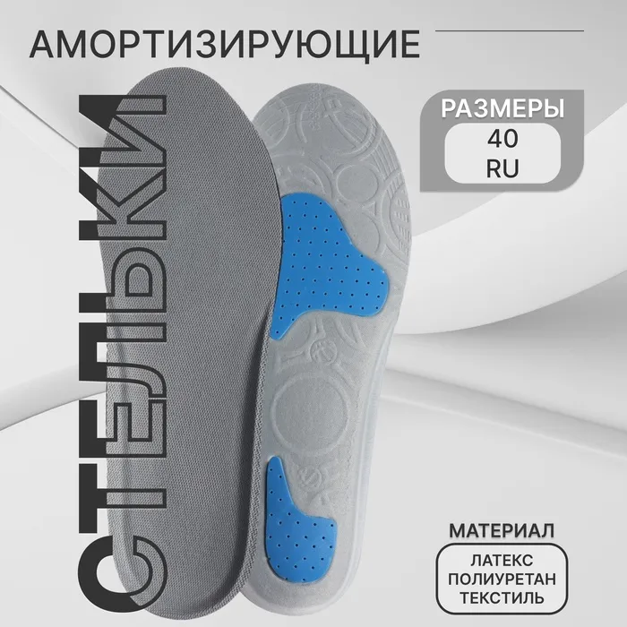 Стельки для обуви, универсальные, амортизирующие, р-р RU до 40 (р-р Пр-ля до 39), 26 см, пара, серые