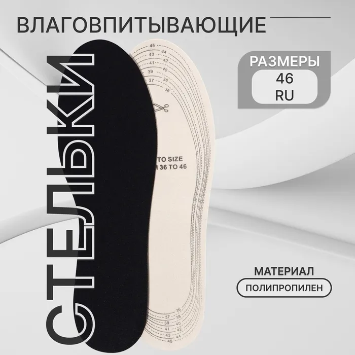 Стельки для обуви, универсальные, влаговпитывающие, р-р RU до 46 (р-р Пр-ля до 46), 29 см, пара, чёрные