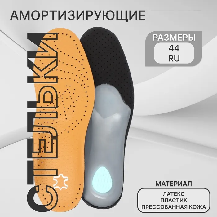 Стельки для обуви, амортизирующие, р-р RU до 44 (р-р Пр-ля до 46), 28 см, пара, серые