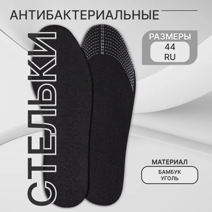 Стельки для обуви, универсальные, антибактериальные, р-р RU до 44 (р-р Пр-ля до 45), 28 см, пара, чёрные