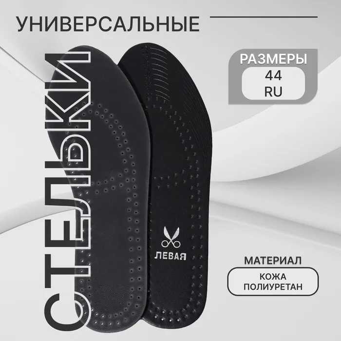 Стельки для обуви, универсальные, дышащие, р-р RU до 44 (р-р Пр-ля до 46), 28 см, пара, чёрный