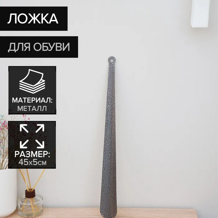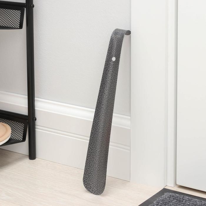 Ложка для обуви Доляна, с кольцом, металлическая, 45×5 см, покрытие антик серебро