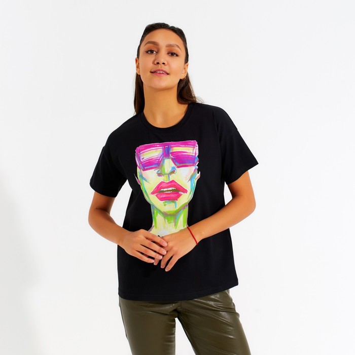 Футболка женская MINAKU Girl, чёрная, размер 48