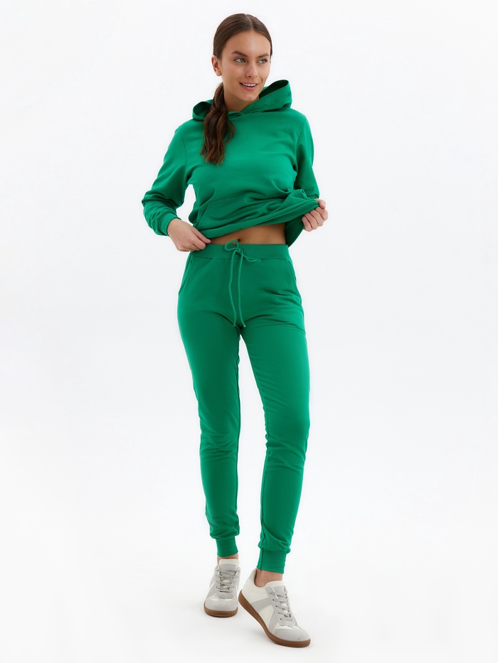 Костюм с начёсом женский (толстовка, брюки) Tusi, размер 50, зелёный