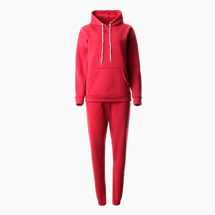 Костюм с начёсом женский (толстовка, брюки), размер 52, бордо