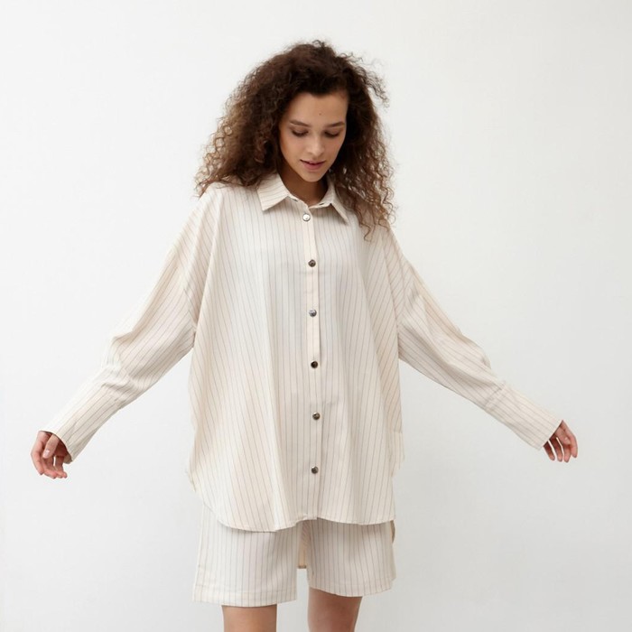 Костюм женский (рубашка, шорты) MINAKU: Casual Collection, бежевый, размер 44