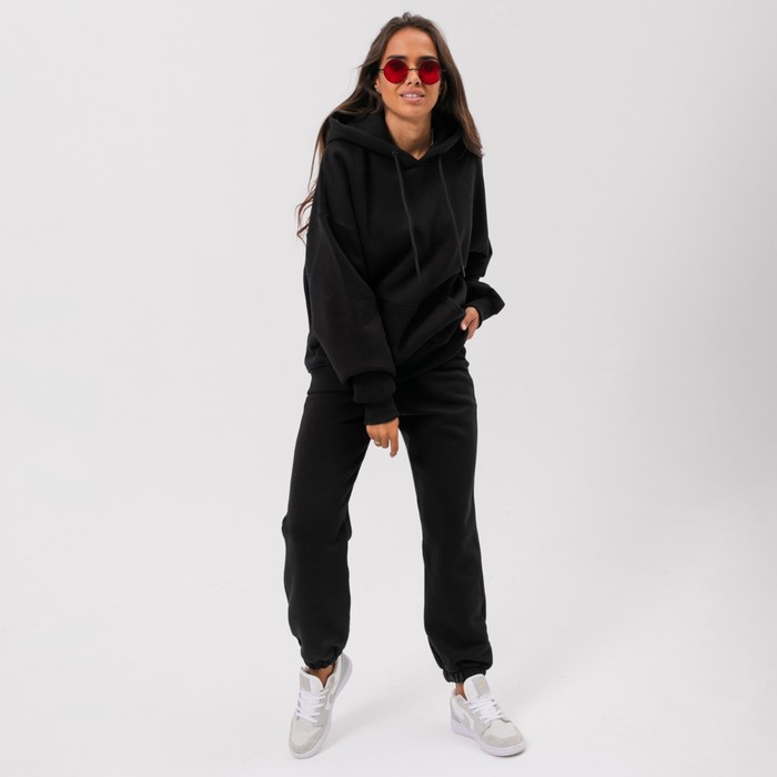 Костюм с начёсом женский (толстовка, брюки) Little Secret, чёрный, размер 44 (M)