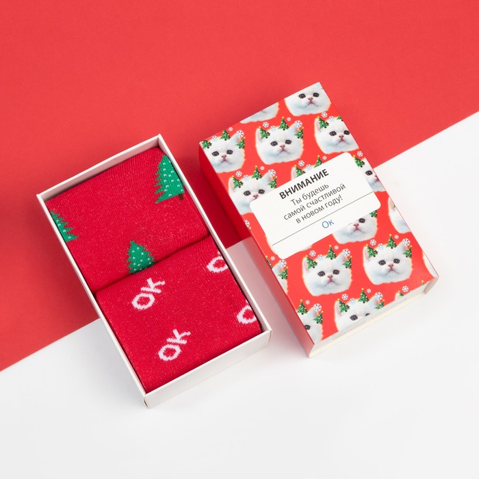 Носки женские новогодние KAFTAN «Внимание» размер 36-40 (23-25 см), набор 2 пары