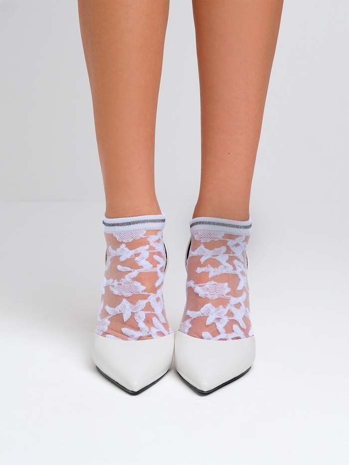 Носки стеклянные женские «Цветочки», набор 2 пары, размер 35-37 (22-25 см), цвет белый, бежевый