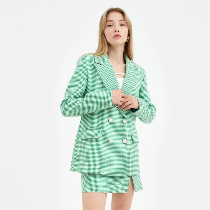 Пиджак женский двубортный MIST р. 50, зелёный/белый