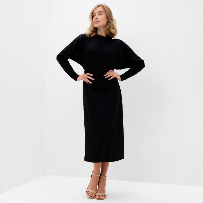 Платье женское трикотажное MINAKU: Basic line цвет черный, р-р 44