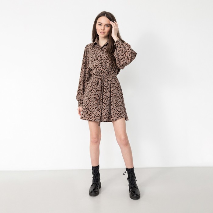 Платье мини женское на пуговицах MIST, размер 44, бежевое