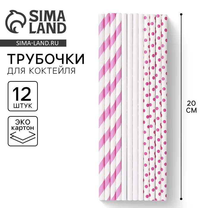 Трубочки для коктейля «Ассорти», набор 12 шт., розовые