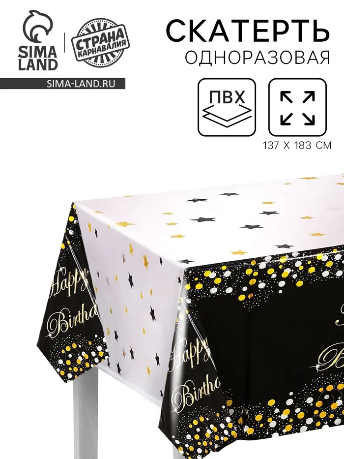 Скатерть «С днём рождения», 137×183 см, чёрная