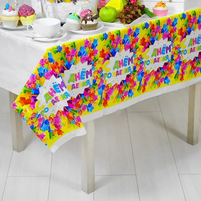 Скатерть одноразовая «С днём рождения», 137×183 см, белая