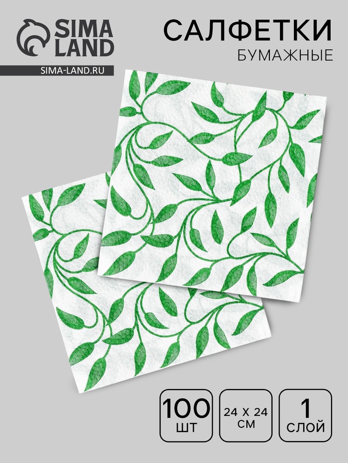 Салфетки бумажные однослойные «Узоры зеленые», 24 х 24, 100 шт