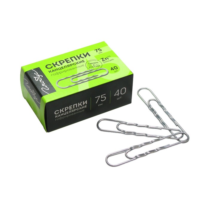 Скрепки канцелярские GLOBUS, 75 мм, 40 шт., оцинкованные, гофрированные