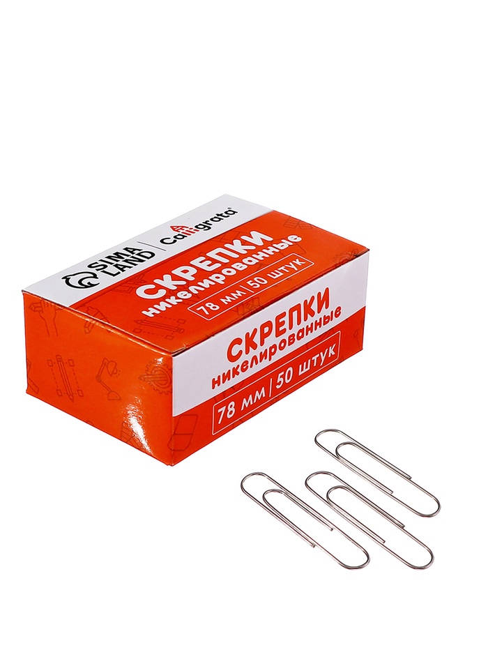 Скрепки 78 мм никелированные в картонной коробке 50 штук