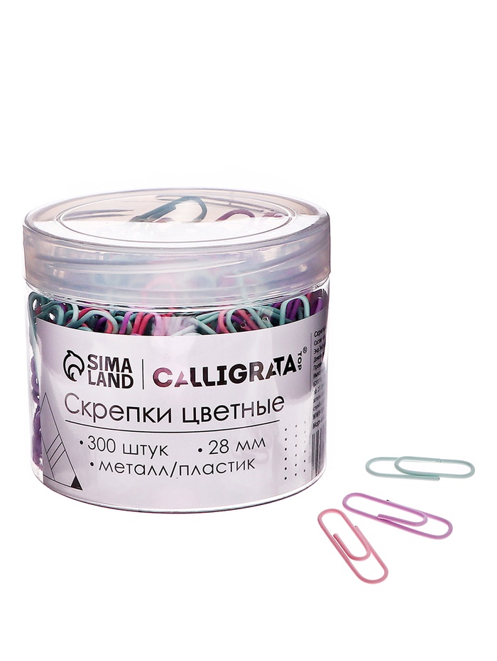 Скрепки 28 мм пастель в пластиковой тубе 300 штук