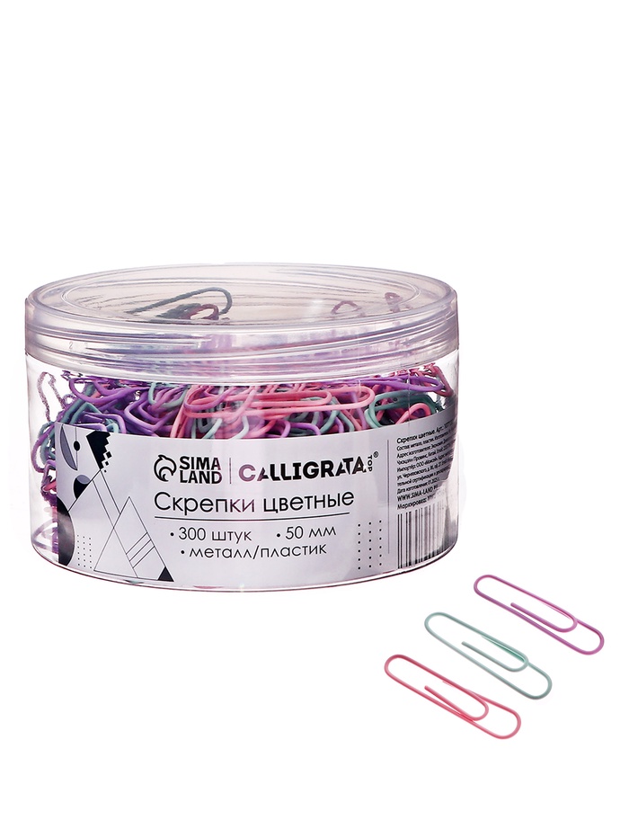 Скрепки 50 мм пастель в пластиковой тубе 300 штук