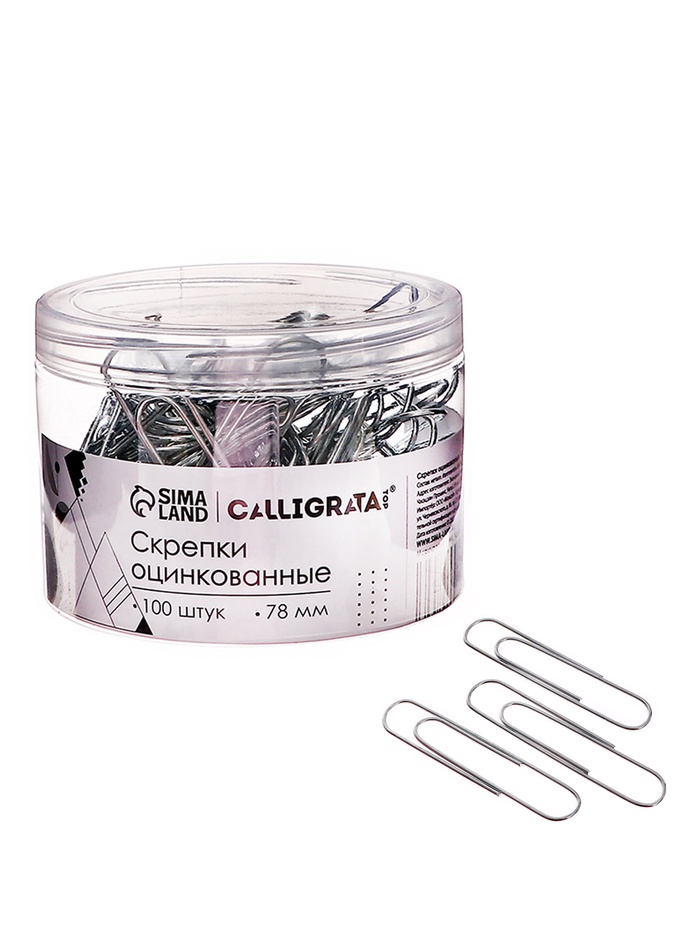 Скрепки 78 мм оцинкованные в пластиковой тубе 100 штук