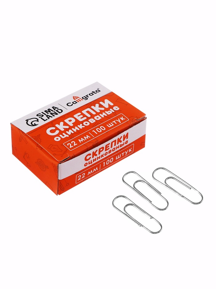 Скрепки 22 мм оцинкованные в картонной коробке 100 штук