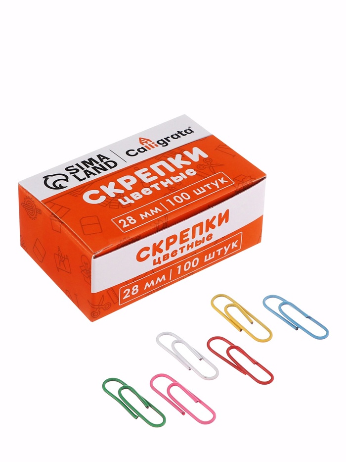 Скрепки 28 мм цветные в картонной коробке 100 штук